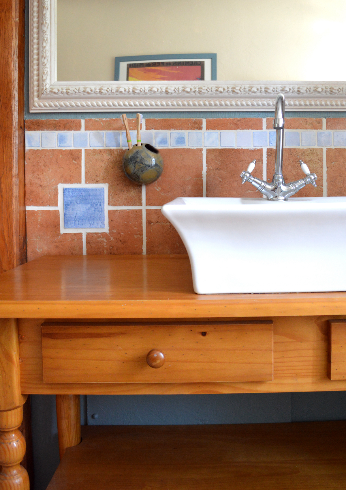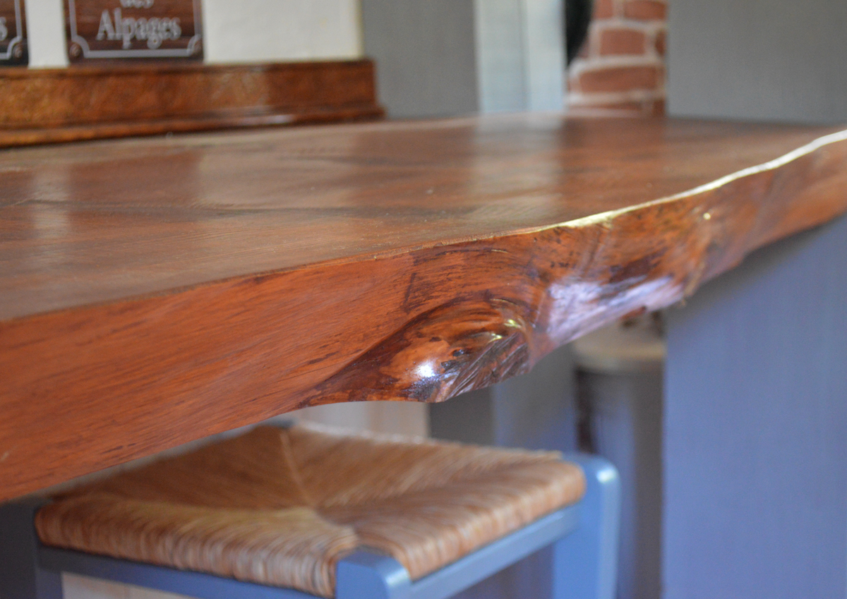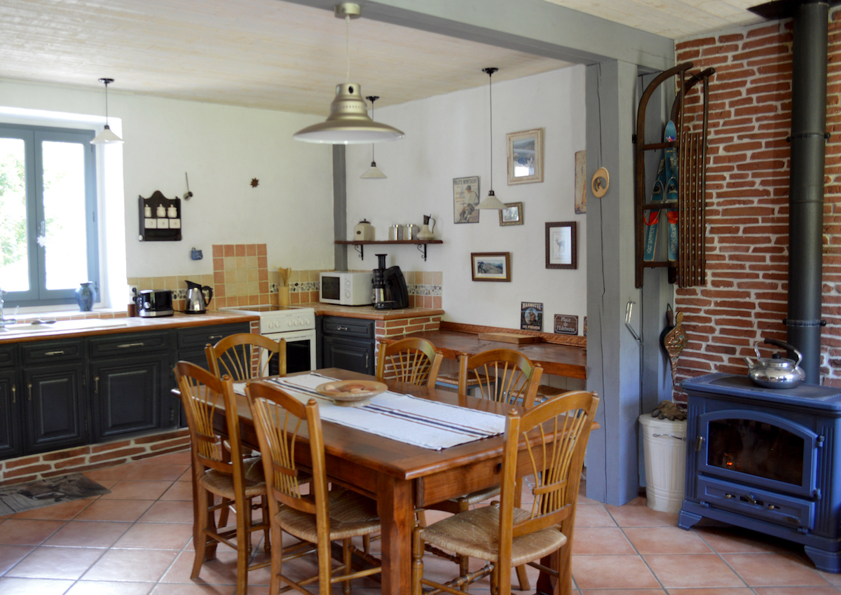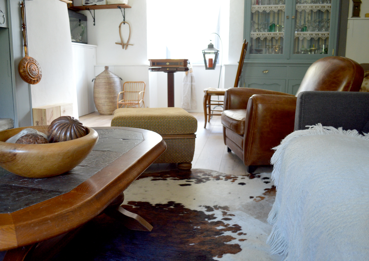 Cette rénovation intérieure est le résultat d’une composition de nombreux matériaux locaux, de détournement d’objets et de nombreuses heures de chine. Les pierres ont été révélées en façade, plusieurs éléments en chêne (issus d’une scierie voisine) ont été intégrés comme plan de travail ou élément structurel et le mobilier de famille a trouvé sa place dans les différentes pièces.